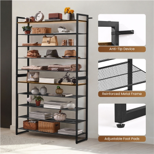 Say goodbye to the entryway clutter and hello to a calm, organized home. You\'ll enjoy the ease of finding your favorite pairs instantly, while the warm, industrial style creates a welcoming atmosphere that greets you and your guests at the door.
