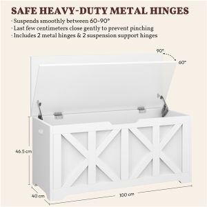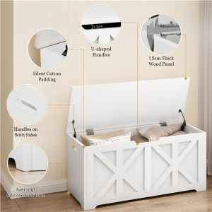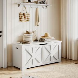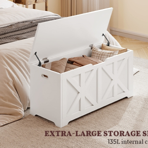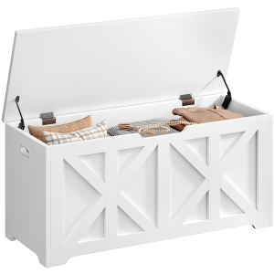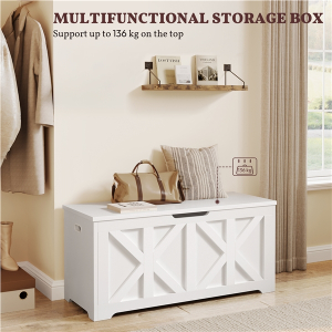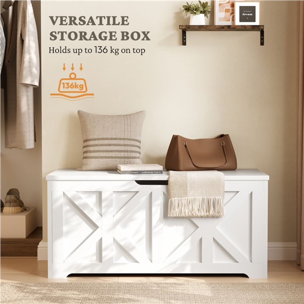 Whether used as extra seating in your entryway, a comfy spot by the foot of your bed, or a storage bench in your living room, this wooden storage bench offers more than just storage. The 132L (35-gal) space keeps shoes, blankets, and seasonal items neatly tucked away, helping to reduce clutter and create a calm, organized atmosphere. Supporting up to 136 kg (300 lb), the sturdy top offers a comfortable seat for one or two people. Designed to enhance your living space, it adapts to any space in your home, complementing both functionality and style.