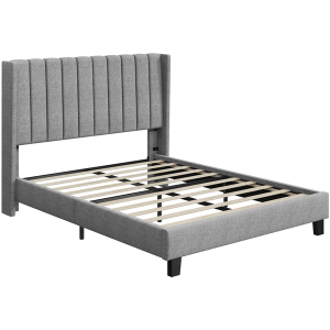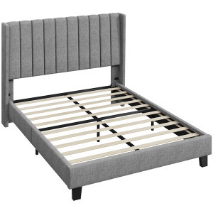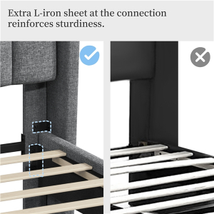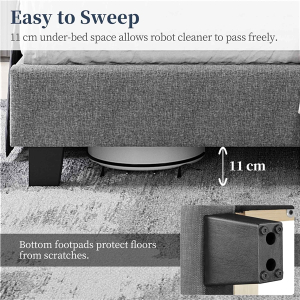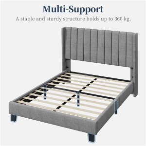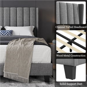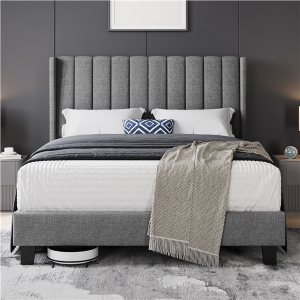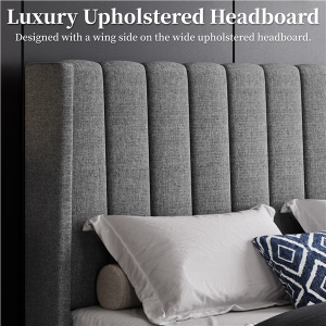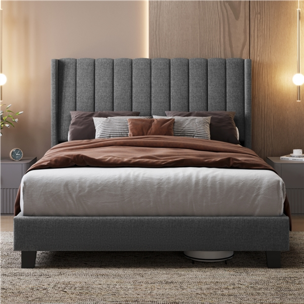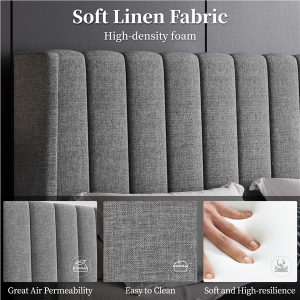 Whether you\'re dressing up the main suite or need a statement piece for your loft, the upholstered platform bed is your ideal addition, offering a comfortable sense of security and creating a boutique experience for the modern family. This upholstered platform bed combines a sturdy metal frame, foam padding, linen-blend fabric, and engineered wood for lasting durability. The upholstered headboard, wooden slats, and central support legs provide reliable mattress support, creating a comfortable and secure environment. With modern, clean lines and classic tufting, this exquisite piece of furniture brings elegance and sophistication to your bedroom.