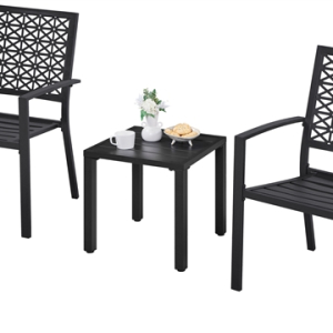 This 3-piece outdoor furniture set includes a coffee end table and two dining chairs, which is ideal for your patio, garden, balcony, porch, and front or back yard.