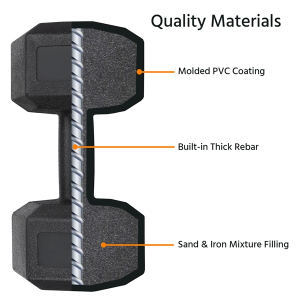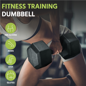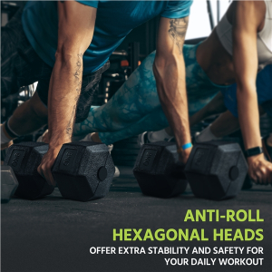 You don\'t need fancy equipment to build muscle strength. With our versatile 12 kg hex dumbbell set, you can effectively target multiple muscle groups. These fixed weights are ideal for a wide range of full-body workouts. These robust hex dumbbells are filled with sand and iron and reinforced with a built-in metal rebar. The hexagonal heads of our dumbbells offer exceptional stability and safety, particularly during exercises like dumbbell pushups and renegade rows. Additionally, the flat edges prevent the dumbbells from rolling when placed down, ensuring a secure and hassle-free workout experience.