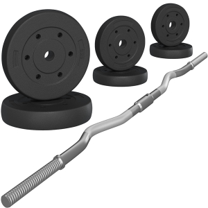 Customize your workouts with this versatile barbell weight set. It includes a curl bar that reaches 120 cm when assembled with the 10 cm connecting rod, two 1 kg plates, two 1.5 kg plates, and two 5 kg plates, designed to enhance your leg, hip, and back strength. Made from durable nickel-plated iron, concrete, and HDPE, this set is robust for long-term use. The ergonomic W-shaped curl bar features an anti-slip, knurled grip to ensure a secure hold, while star locks keep the weights firmly in place. Easy to store and transport, this weight-lifting bar set is a practical addition to homes, garages, and gyms.