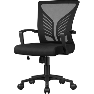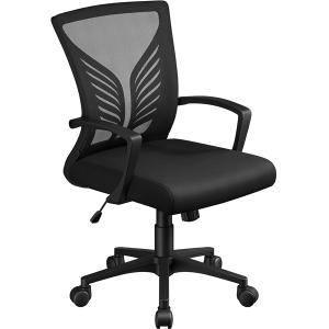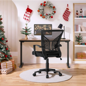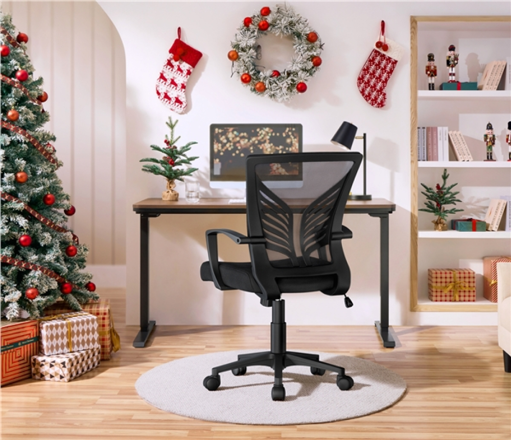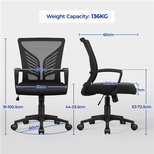 Featuring a sleek butterfly-inspired design lumbar support, this desk chair combines modern elegance with practical functionality. Constructed from a durable nylon base, it supports up to 136 kg / 300 lb, ensuring long-lasting performance. The high-density foam seat cushion and curved armrests offer supportive comfort, while the mesh backrest with lumbar support enhances airflow and provides essential lower back relief. The rocking function, adjustable tension knob, and effortless seat height adjustment cater to personalized ease, making it a versatile addition for home offices, studies, meeting rooms, dormitories, offices, or gaming rooms.