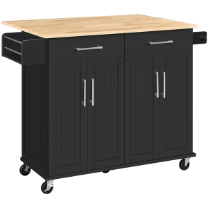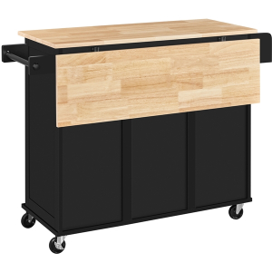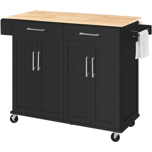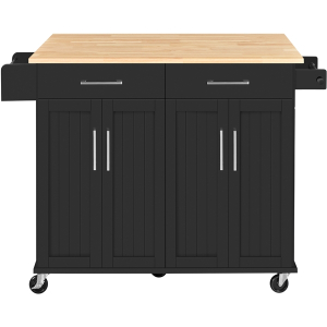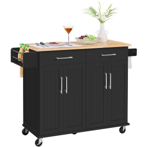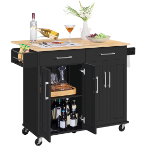 Struggling to keep your kitchen organized? A functional rolling kitchen island can provide extra space for storing essentials while reducing clutter. Made from durable MDF and particle board, this cart features a water-resistant wood tabletop. With five wheels—two of which are lockable—it\'s easily movable and stays securely in place when needed. This cart offers ample storage and organization space, and it can double as a breakfast or cocktail bar when paired with counter-height stools. Its Nordic-inspired, modern design adds an elegant touch to any kitchen.