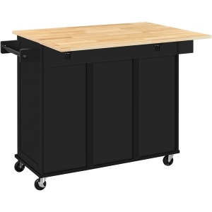 Specifications: Color: Black Materials: MDF, Rubberwood, Pinewood, Particle Board Assembled Dimensions: 123.5 cm L × 75 cm W × 91 cm H Countertop Size (folded): 102 cm L × 45 cm W Foldable Tabletop Size: 102 cm L × 30 cm W Drawer Inner Size (ea.): 41.2 cm L × 34 cm W × 10 cm D Spice Rack Inner Size: 31.5 cm L × 11.5 cm W × 10.5 cm H Cabinet Shelf Size: 46 cm W × 37.5 cm D Adjustable Shelf Height: 38 cm, 32 cm, 25.5 cm Maximum Weight Capacity: Tabletop: 70 kg Foldable Tabletop: 10 kg Shelf (ea.): 13 kg Drawer (ea.): 7 kg Total Dynamic Weight Capacity: 35 kg Item Weight: 41 kg Shipping Weight: 45.3 kg