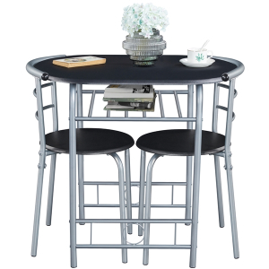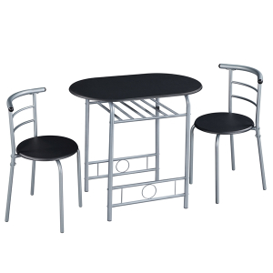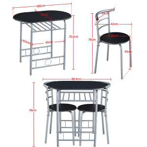 Specifications: Material: MDF + Iron Color: Black + Silver Overall Dimensions: Table: 80 cm L × 53 cm W × 75.5 cm H Chair: 49 cm L × 42 cm W × 76 cm H Seat Diameter: 35 cm Seat Height: 43 cm Item Weight: Table: 6.4 kg; Chair(ea.): 2.9 kg Shipping Weight: 14.9 kg Maximum Weight Capacity: Table: 90 kg Chair(ea.): 136 kg