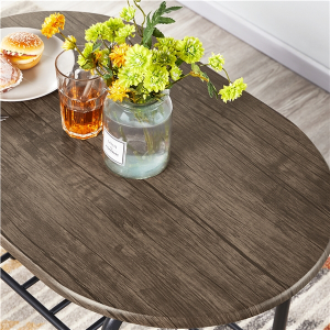 Quick Overview Create a cozy dining area with this practical dining table set. This set is made of premium CARB P2-compliant MDF boards and a metal tube structure, which is sturdy enough for years of use. Featuring a waterproof tabletop and powder-coated steel legs, daily maintenance will be super easy. Given 2 chairs, you can enjoy coffee or breakfast alone, with your partner or friend comfortably. When the chairs are pushed in, this compact dining set takes up very little room, which is ideal for small spaces. This set showcases curved lines and round edges and gives you a relaxed and inviting feeling. The timeless color scheme and small dimensions make this set ideal for kitchens, balconies, bedrooms, apartments, dorm rooms, offices, cafés, temporary activities, etc.