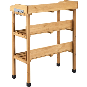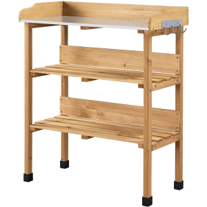 Quick Overview: This 3-layer gardening bench provides versatility, allowing you to stand operating on top without bending over, store tools on the shelves, and display your plants. The robust construction ensures stability, while the metal top guarantees effortless cleaning and water resistance. Thoughtful details like side hooks and back walls add convenience and prevent clutter. Crafted from 100% fir wood, this bench exudes natural charm and durability. With a weight capacity of up to 60 kg on the top surface and 20 kg on each shelf, it offers ample space for your gardening essentials. This potting bench is not just a practical tool but also a stylish addition to your garden. Customize it to suit your taste and enjoy a seamless assembly process with clear instructions included.